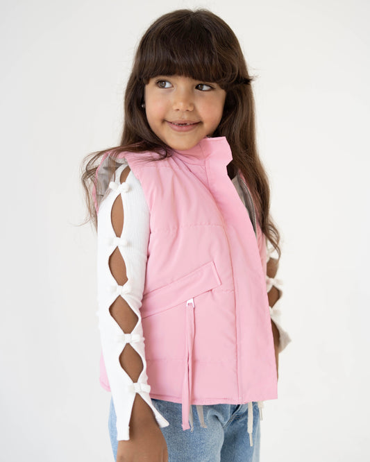 Reversible Puffer Vest – Pink & Grey