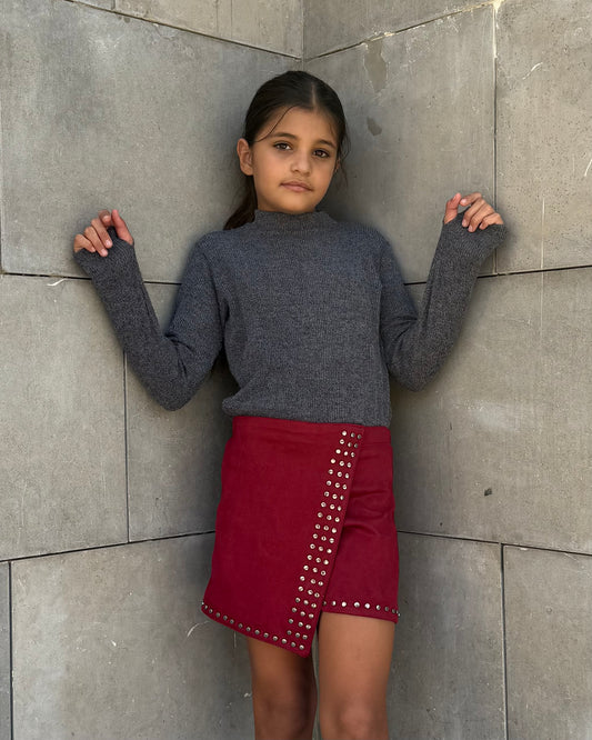 Studded Skort in Burgundy