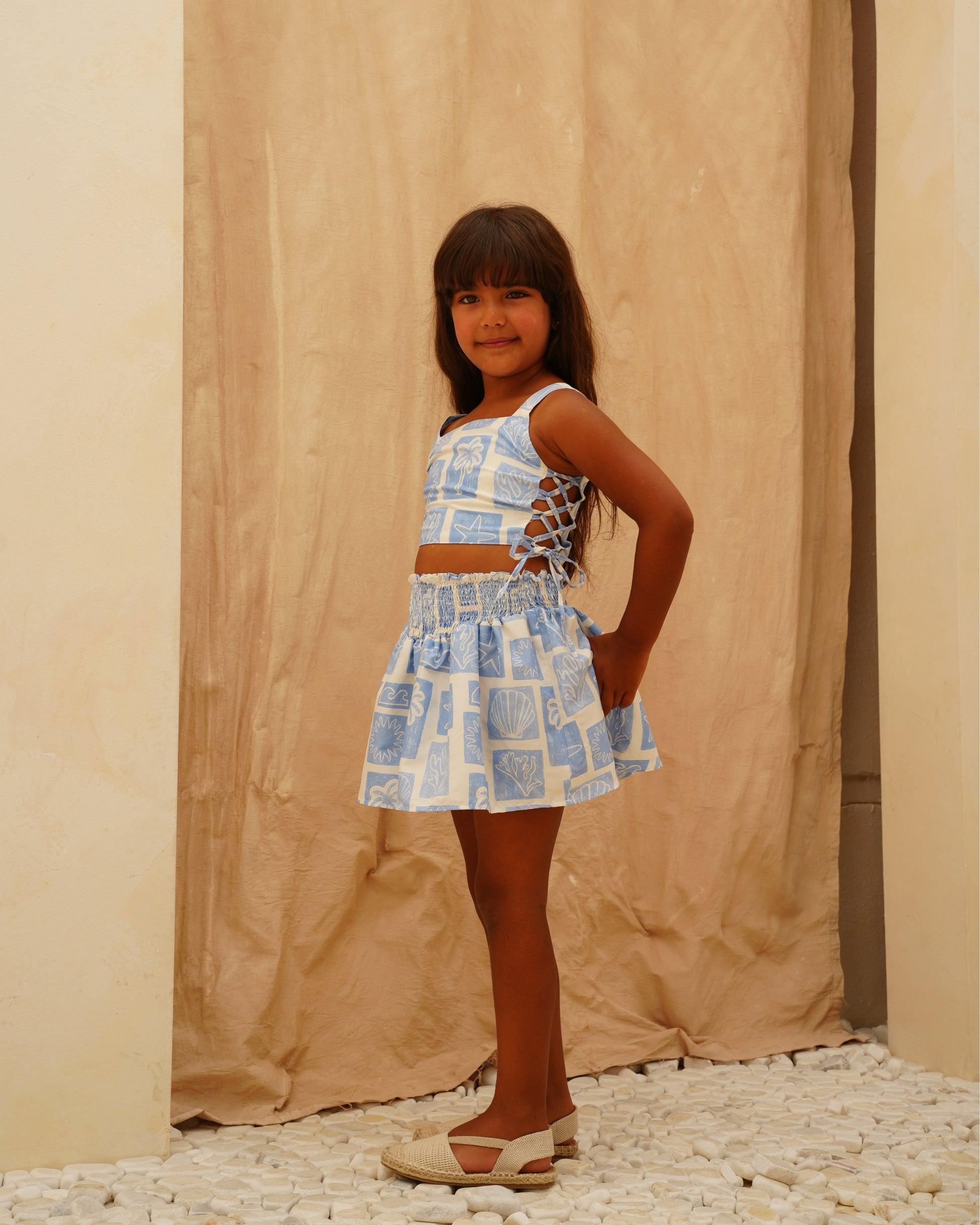 - Skirt with a V-shaped smocked waistband for a flattering fit